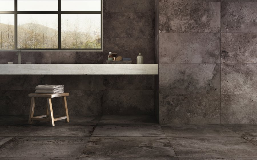 Carrelage effet métal oxydé avec un effet légèrement usé avec des nuances aléatoires. Rectifié afin de pouvoir effectuer des joints fins. Convient aux sols et au murs car la collection est disponible en 120×120, 80×80, 60×120 et 40×80.