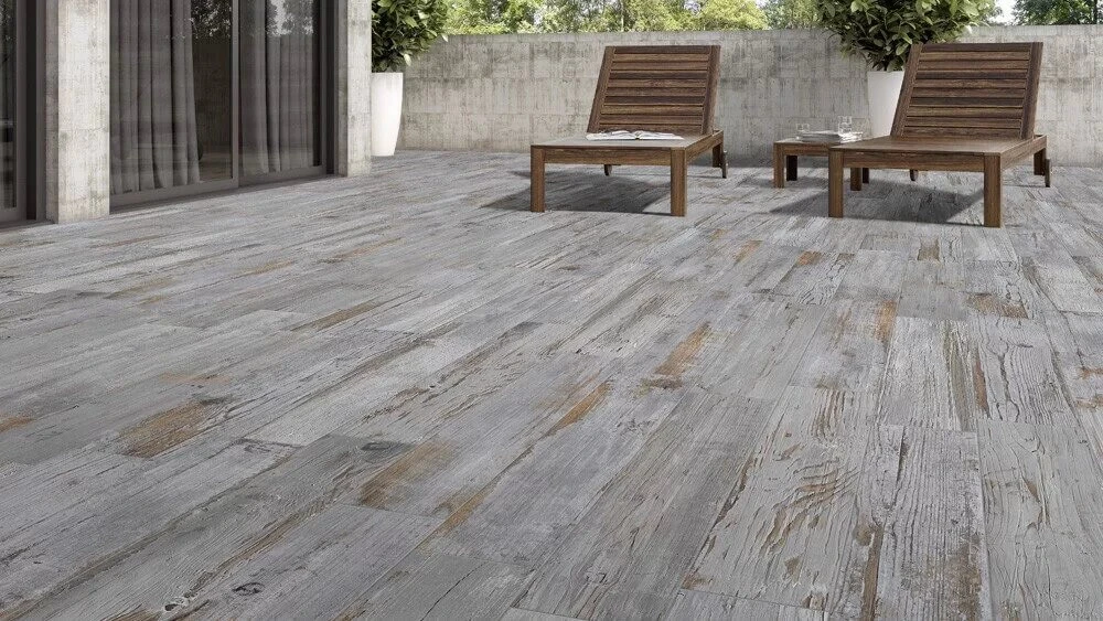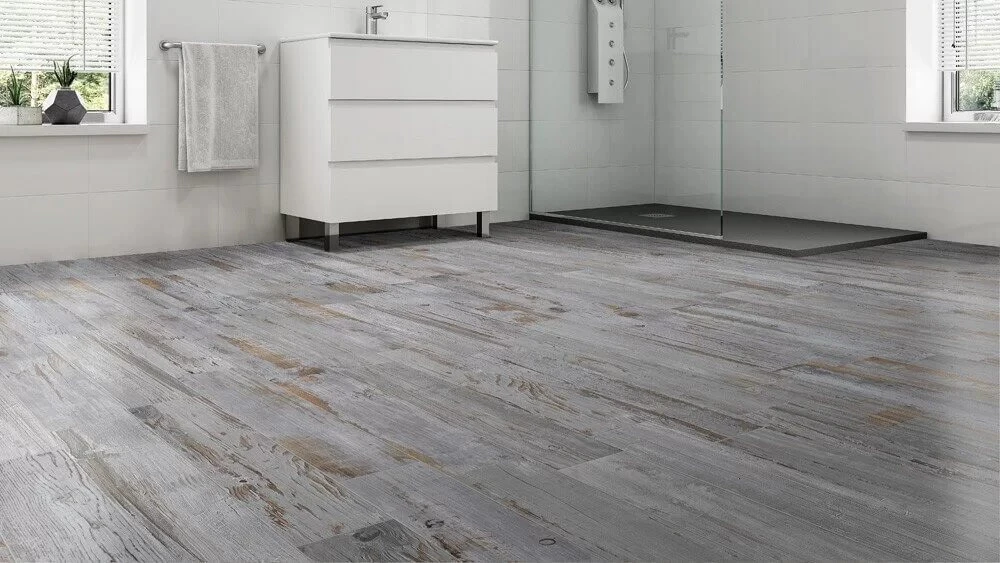 Carrelage imitation parquet blanc vieilli TRIBECA GRIS ANTI DERAPANT 15×90 cm R12 – 1.08m²