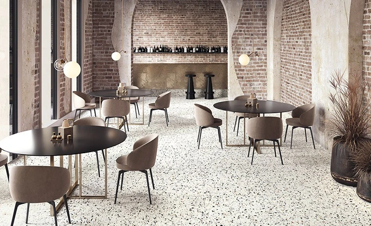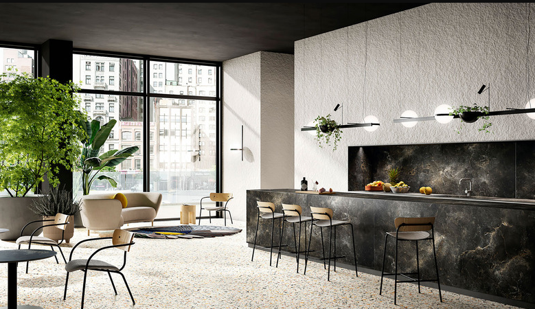 Inspirée par les veines de la lagune vénitienne, cette nouvelle ligne propose six mélanges différents de fragments et d’arrière-plans, formant une collection d’impact esthétique et de richesse visuelle. En plus de 3 nuances de gris avec des tons différents : Rialto, Canal Grande, Giudecca, il y a des blancs : Saint-Marc, Murano et Crème, La Fenice